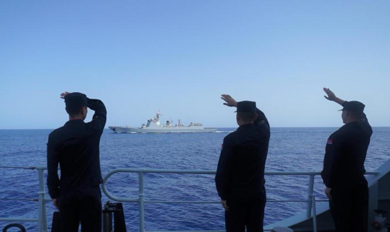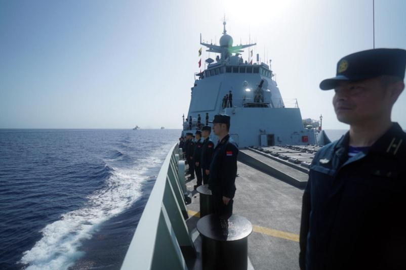中國海軍第40、41批護航編隊在亞丁灣海域分航。田健敏 攝