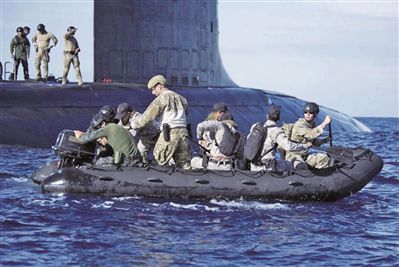 在“環太平洋”演習中,多國參演人員登上小艇(資料圖)。