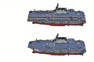 “加賀”號是出云級直升機驅逐艦的2號艦。該級艦主要搭載直升機進行反潛作戰,但在設計之初就拋棄了用于兩棲作戰的塢艙,將騰出的空間用作機庫,另外艦上還設有舷側升降機。這些表明,該級艦從一開始就按照能夠改裝成真正航母而設計的。出云級滿載排水量2.7萬噸,艦長248米,接近美國級兩棲攻擊艦的長度,后者沒有滑躍甲板,卻能搭載并使用F-35B戰斗機。