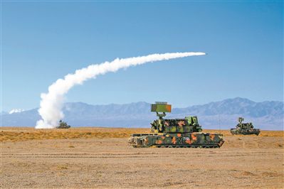 “東南、西南方向發現多架次‘敵機’,向我防衛地域隱蔽突襲……”接到空情通報,指揮員依托多型雷達組成的預警網絡識別跟蹤目標,快速研判戰場態勢!鞍l射!”一聲令下,一枚枚導彈呼嘯著撲向來襲“敵機”,在空中劃出一道道壯觀的弧線。