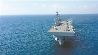 檢驗成果那天,多批多架次艦載直升機從海南艦甲板上騰空而起,標志著海南艦初步形成垂直投送能力。