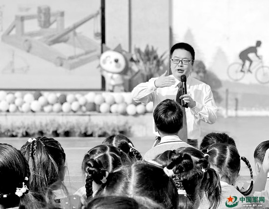 田華在四川省成都市華陽中學附屬小學開展國防教育講座。吳澤倩 攝