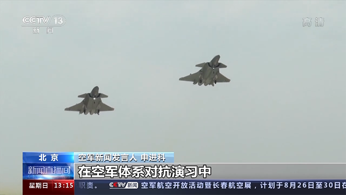 空軍新聞發言人 申進科:東南西北中,奮飛殲-20。在新時代練兵備戰中,殲-20飛行人才穩步成長,海上方向實戰化訓練深入開展,在空軍體系對抗演習中發揮了重要作用,為空軍新質作戰能力躍升提供有力支撐。矢志強軍夢,看我運-20。這十年,大國重器運-20的航跡飛越了崇山峻嶺,飛過了廣闊大洋。