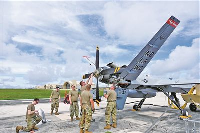 美空軍國民警衛隊隊員在關島安德森空軍基地對MQ-9無人機進行起飛前檢查。
