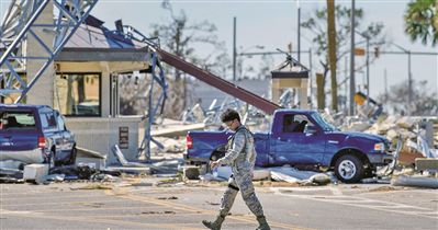 颶風對美國佛羅里達州廷德爾空軍基地造成嚴重破壞。