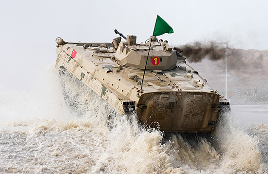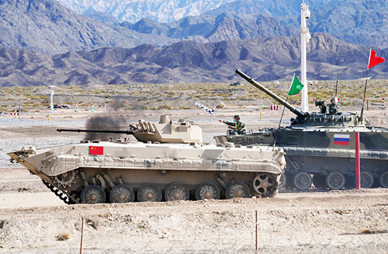 上午11時許,比賽正式開始,中國和俄羅斯參賽隊率先發車,白俄羅斯和伊朗參賽隊分在第二組出發。比賽現場,狂風呼嘯,伴著鐵甲的轟鳴,只見中國車組在各類障礙中靈活穿行,攀土嶺、躍斷崖、沖硝煙、過壕溝……動作一氣呵成,精彩表現一次次將現場氣氛推向高潮。與此同時,各參賽國步戰車你追我趕、破風突進,奉獻了一場速度與激情的精彩對決。