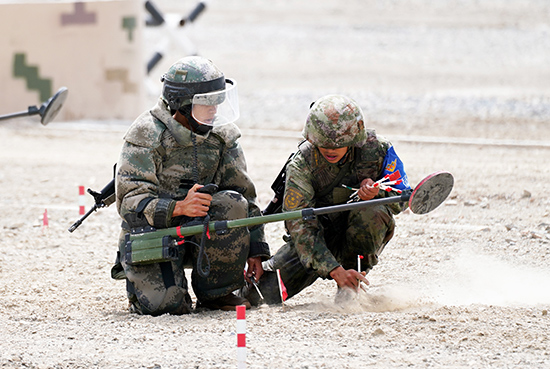 中國參賽隊員掃雷作業。張永進攝