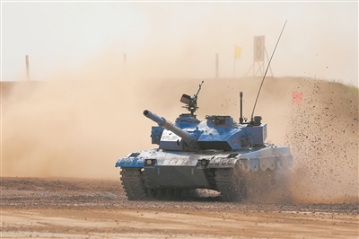“坦克兩項”決賽中,中國參賽隊駕駛的坦克在高速機動。羅坤攝