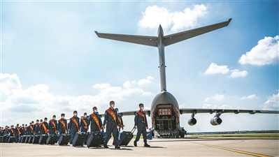 7月31日,新錄取的飛行學員走下運-20飛機,前往空軍航空大學報到。高思遠攝