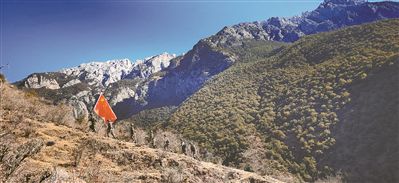 山峰終年積雪。中隊長潘鵡行記得,2年前的一次大雪,整整下了7天,積雪50厘米厚。