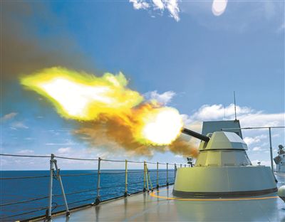 “發現‘敵’艦!”突然,刺耳的戰斗警報聲劃破夜空。官兵聞令而動,迅速進入戰斗狀態。就在編隊向目標抵近時,“敵”艦發起攻擊。各艦一邊快速機動規避,一邊實施火力反擊。海面上,一發發炮彈從不同方向破膛而出,接連撲向目標。