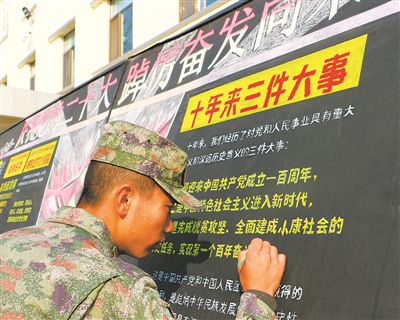 “黨的二十大的主題是什么?”“新時代新征程中國共產黨的使命任務是什么?”記者看到,官兵們在訓練間隙圍坐在一起,開展黨的二十大精神“快問快答”活動。據了解,官兵還積極參加“強軍故事會”等活動,人人上臺談體會、話感悟,深化對黨的二十大精神的理解。