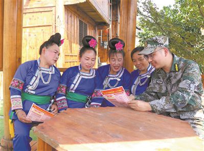 10月28日,貴州省天柱縣人武部組織民兵宣講小分隊深入高釀鎮地佳村,用侗漢雙語向村民宣講黨的二十大精神。