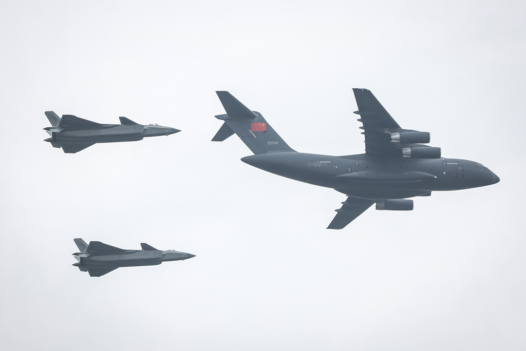 9月16日,空軍兩架戰斗機為護送烈士遺骸的專機護航。新華社記者 潘昱龍 攝