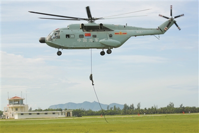 第74集團軍某旅偵察連與海軍航空兵某部組織聯合機降訓練。張亞斌攝