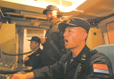 “發現‘敵’空中目標向我近飛!”編隊抵達訓練海域不久,就接到“敵情”通報。伴著急促的警報聲,各艦迅速組成對空防御隊形,準備抗擊來襲目標。