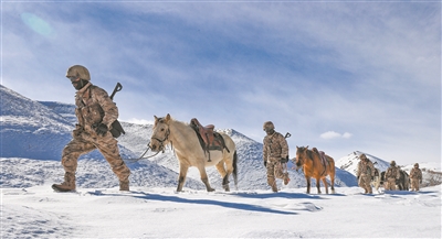 阿里軍分區某邊防團官兵踏雪巡邏。劉曉東攝