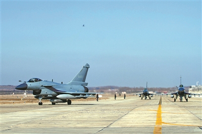 王奎和戰友駕駛戰機滑出,準備升空訓練。