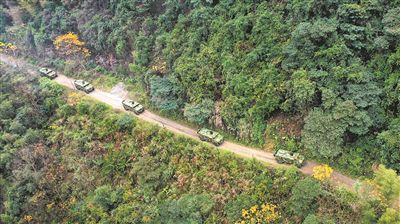 祖國昌帶領官兵在山岳叢林間駕車訓練。