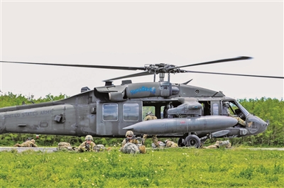 美軍UH-60“黑鷹”直升機在天寧島參加訓練。