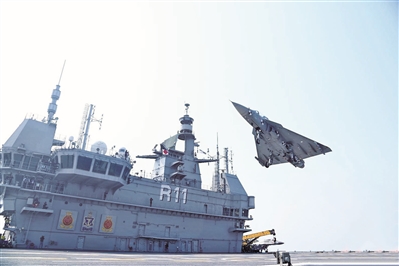 印度國產LCA“光輝”艦載機在“維克蘭特”號航母上成功起降。