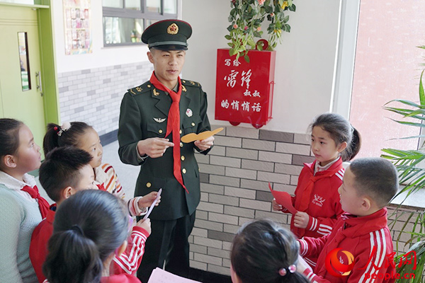 校外輔導員張陽向雷鋒小學學生講述雷鋒故事。孫明坤攝