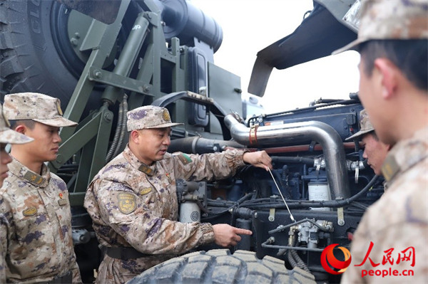 修理骨干正在進行野戰環境下備用輪胎緊急更換。姜梓涵攝
