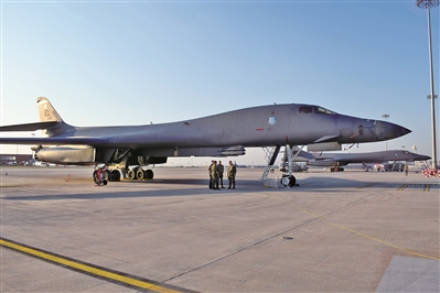 B-1B戰略轟炸機由北美航空公司(后被波音公司收購)于20世紀70年代研制,1974年首飛。B-1B是B-1系列戰略轟炸機的主要改進型號,它降低了高空最大飛行速度,提高了低空最大飛行速度,由B-1A方案的高空高速突防方式改為低空高速突防方式,目前主要用于執行常規轟炸任務。
