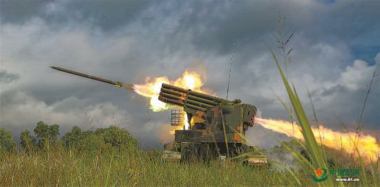 一輪戰罷,硝煙尚未散盡,部隊接到轉移陣地的命令。不多時,各戰車從戰斗狀態轉換至行軍狀態,以小群多路方式快速駛離陣地。與此同時,在山野間靜默的火箭炮分隊迅即出動,占領射擊陣地,接力發起攻擊。陣地上空,一枚枚火箭彈呼嘯著劃破蒼穹,織成一張密集的火力網。