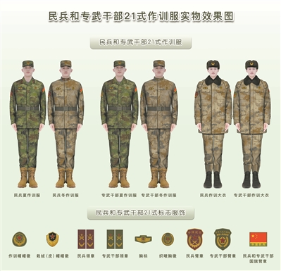 經國務院、中央軍委批準,2023年8月1日起,全國基干民兵和專職人民武裝干部(以下簡稱“專武干部”)將陸續配發啟用21式作訓服。