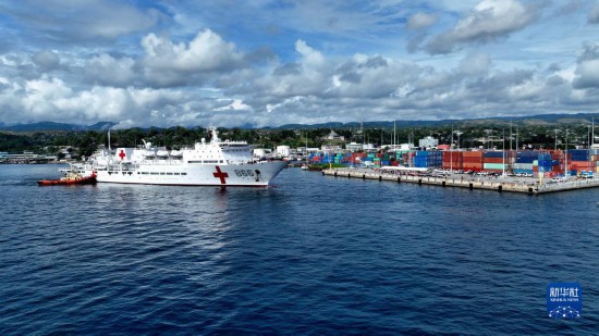 8月19日,中國海軍“和平方舟”號醫院船抵達所羅門群島霍尼亞拉港。新華社發(桂江波 攝)
