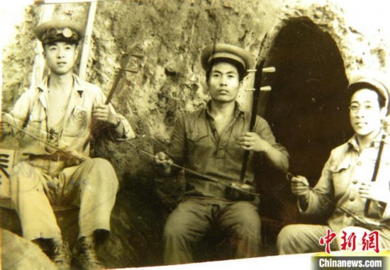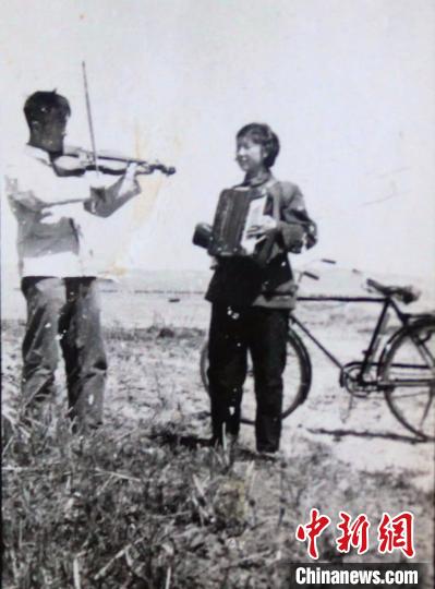 新婚之后,閆欣秋與閆秀珍一起合奏(翻拍老照片)。楊俊欽攝