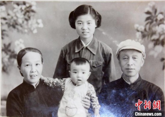 到新疆前,閆秀珍與閆欣秋家人合影。(翻拍老照片)。楊俊欽攝