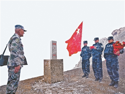 “45年的堅守,45年的奉獻,你用青春和熱血踐行‘一生只做一件事,我為祖國守邊防’的錚錚誓言。向你致敬!”這天上午,在海拔4060米的中吉一號界碑前,一場特殊的退休儀式在紛飛的雪花中舉行。