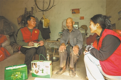 黃修良(左一)和志愿者一起看望孤寡老人。魏忠友攝