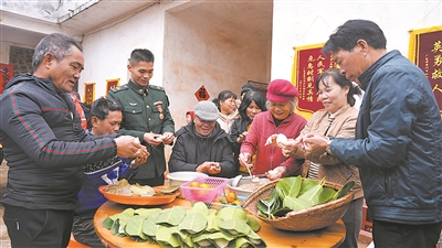 “出鍋嘍!”熱氣騰騰的葉搭餅等美食擺上餐桌,柯才太招呼大家上桌,小院里洋溢著濃濃的年味兒。