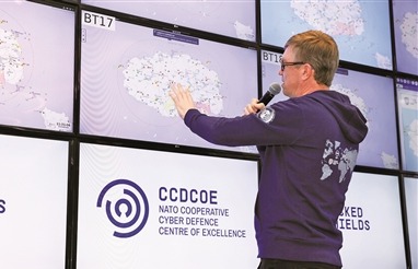 “鎖盾-2024”演習期間,參演人員正在演示如何幫助受攻擊國家抵御網絡攻擊。