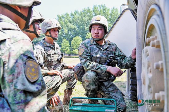 戰車駛至目標地域,載員快速下車隱蔽。一聲令下,爆破手手持爆破筒沖向“敵”防御工事,打通進攻道路。年輕的爆破手毫不畏懼、勇往直前,一如當年戰斗中的老連長楊根思。