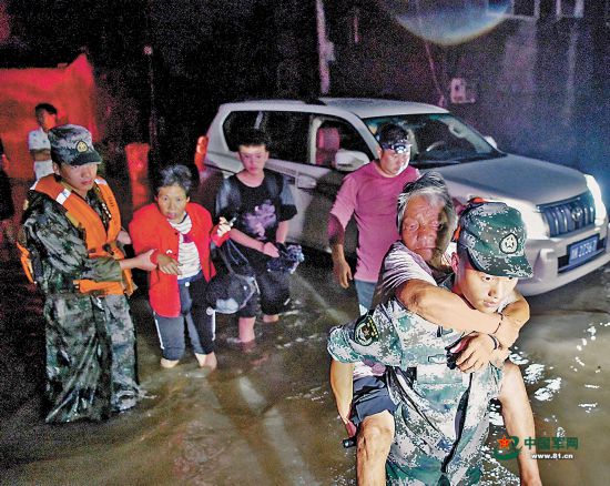 2021年7月,官兵參加抗洪搶險時轉移被困群眾(資料照片)。