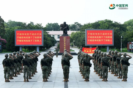 “楊根思連”官兵在老連長雕像前喊響“三個不相信”英雄宣言。季鵬 攝