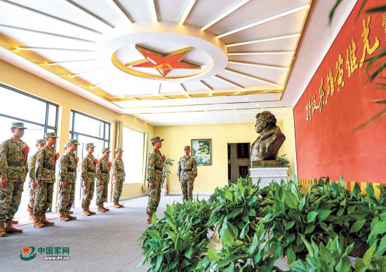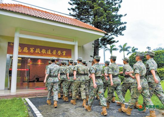 第74集團軍某旅“志愿軍戰歌連”新兵走進連隊榮譽室,參觀學習連隊光榮歷史。胡少龍 攝