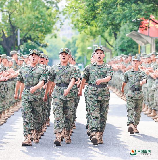 第71集團軍某旅為下連新兵舉行歡迎儀式,新兵們以昂揚的精神面貌列隊步入營區。黃振宇 攝