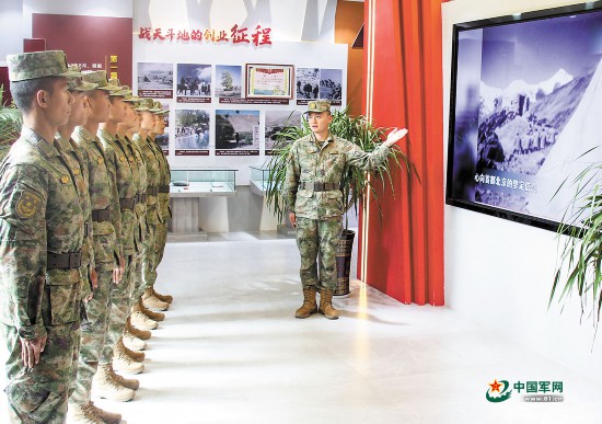 新疆克孜勒蘇軍分區組織新兵學習先輩艱苦戍邊事跡,強化勇于擔當、無私奉獻精神。陳斌 攝
