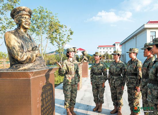 火箭軍某部組織新兵在英模人物雕像前開展職責使命教育。宋雨濤 攝