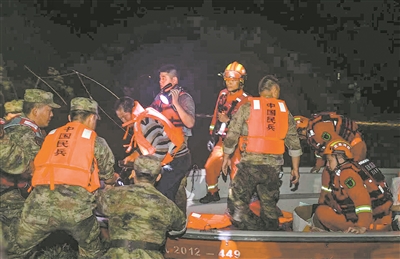 7月5日晚,岳陽軍分區組織民兵搜救被困群眾。陳靜 攝