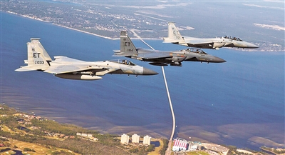 美軍F-15EX戰斗機(右一)進行飛行測試。