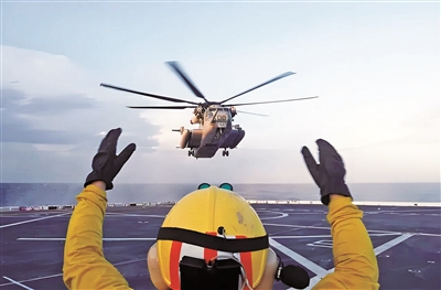 美軍“大規模演習-2024”期間,艦上人員指揮直升機著艦。