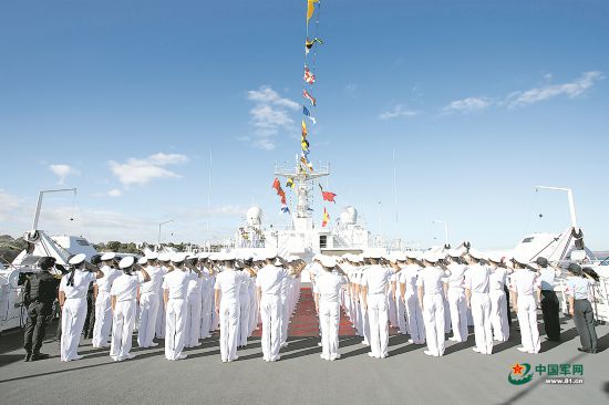 和平方舟醫院船舉行升旗儀式慶祝建軍97周年