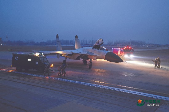 海軍航空大學某基地場站組織夜間保障訓練。白高峰 攝