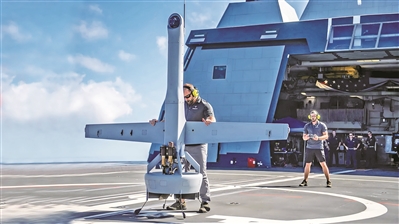 美國一家初創公司在美海軍“邁克爾·蒙蘇爾”號驅逐艦上試飛其研制的無人機。